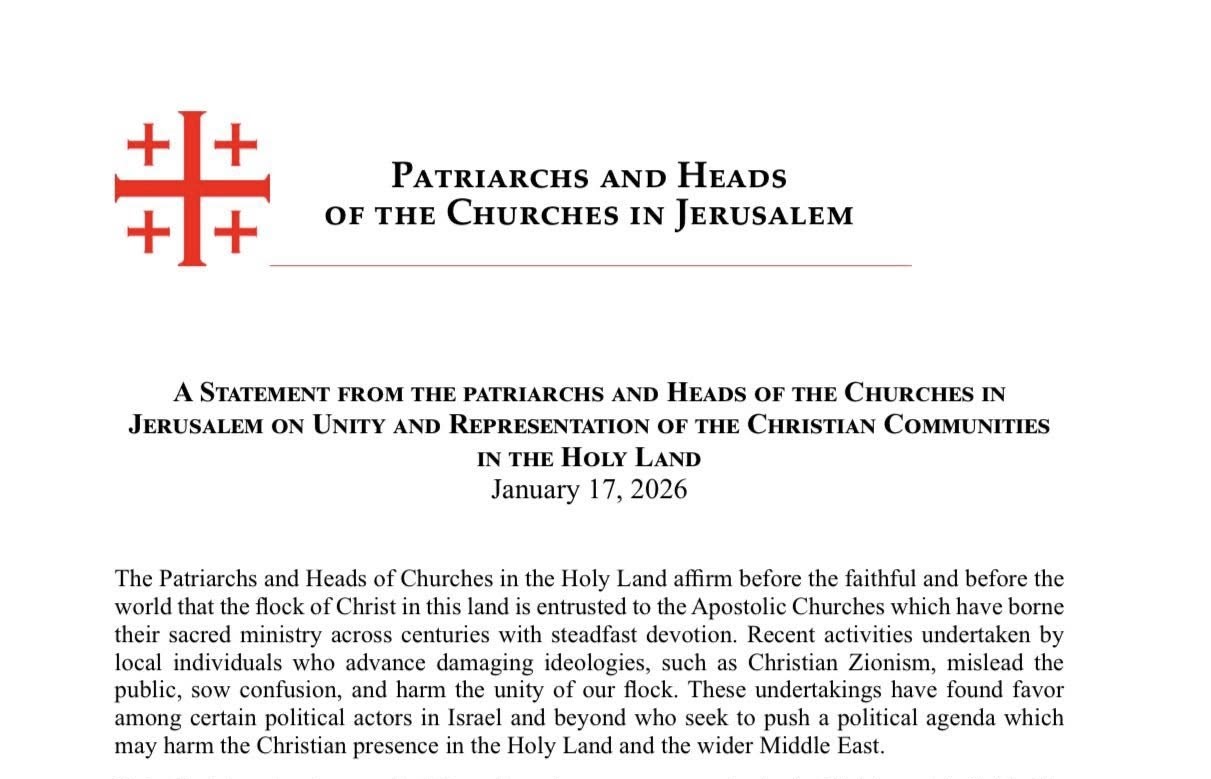 Statement from the Jerusalem Patriarchs and Heads of Churches on Unity and Representation of Christian Communities in the Holy Land